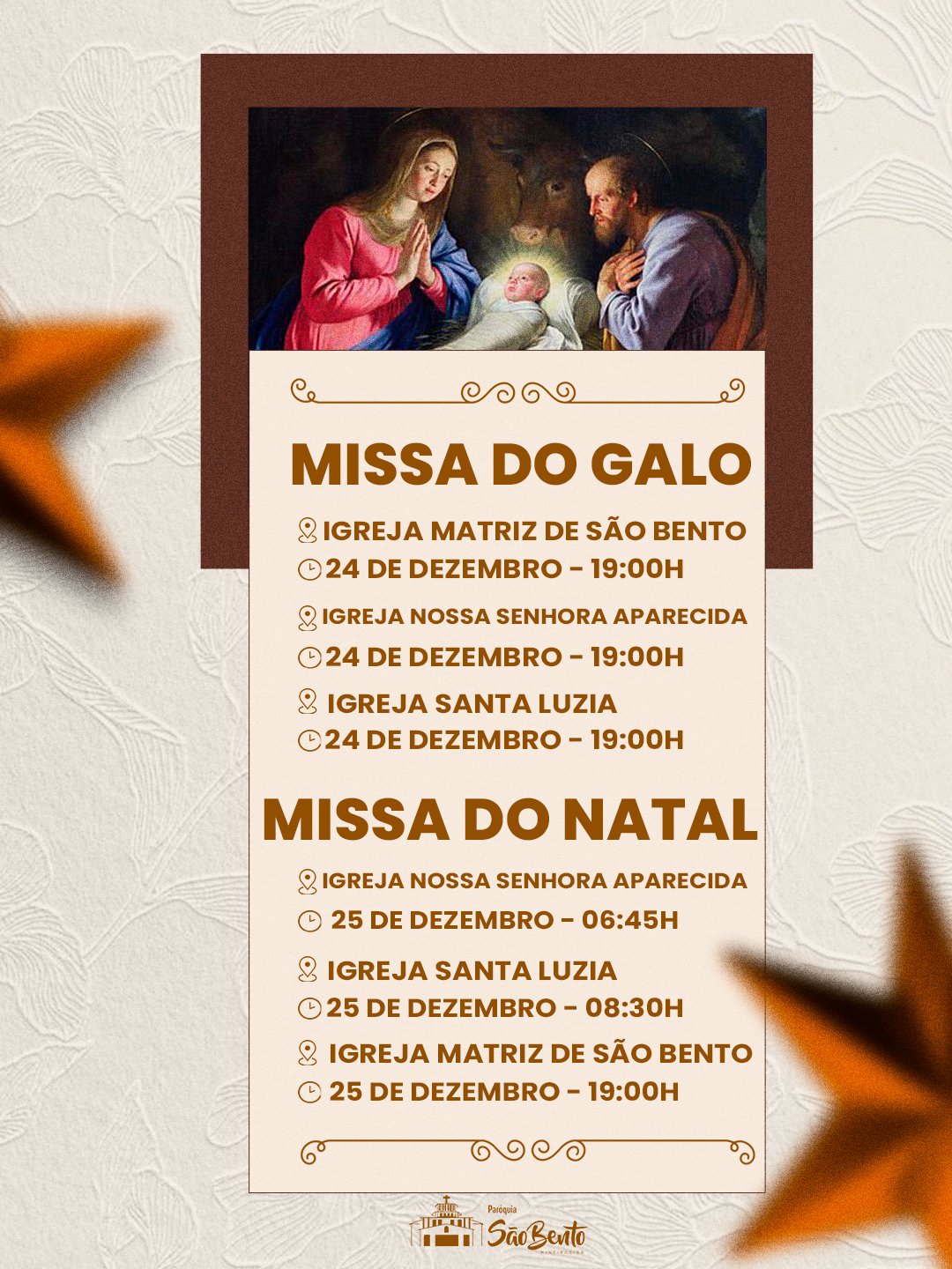 E no Dia de Natal, dia 25, celebramos juntos: às 6h45 na Igreja Nossa Senhora Aparecida,